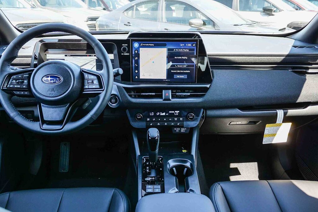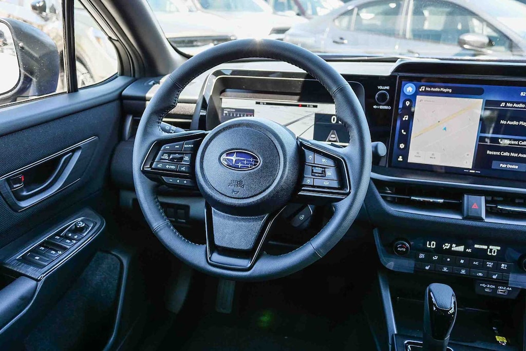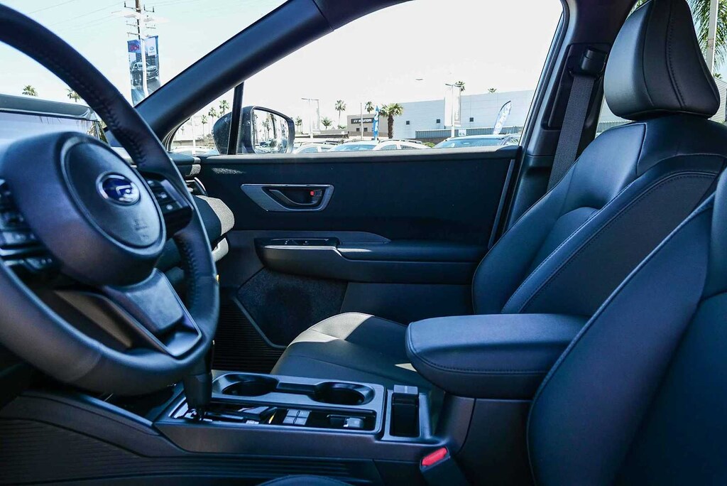 NAVIGATION & HEATED STEERING WHEEL & MOONROOF Partial Heated Steering Wheel, Power Moonroof, tilt up and internal retracting w/auto-open/close and laminated, UV, dark tinted glass, Wireless Charger, Rain Sensor Windshield Wipers, Radio: Subaru 12.1 Multimedia System w/Navigation, AM/FM stereo, HD Radio, valet mode, multi-touch gesture high resolution display screen, voice activated controls, voice activated navigation, Bluetooth® audio streaming and hands-free phone connectivity w/SMS text messaging (refer to subaru.com for cell phone compatibility), TomTom navigation software w/what3words, smartphone integration for Android Auto® and Apple CarPlay® w/full screen view and wireless connection, USB (CCU only) and Over The Air (OTA) audio system update, audio system, hands-free phone and voice, EXTERIOR/INTERIOR AUTO DIMMING HL MIRRORS Auto-Dimming Exterior Mirror w/Approach Light, Auto-Dimming Mirror w/Compass & HomeLink and H501SAN000. Rear Spoiler, Privacy Glass, Keyless Entry, Remote Trunk Release, Child Safety Locks.